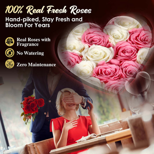 ADDWel Romantic Roses Flower Gift for Women Birthday Anniversary, Eternal Fresh Roses Bouquet with Natural Fragrance, 27-Pieces Preserved Real Roses in Heart-Shape Box for Wife Girlfriend Mom Grandma